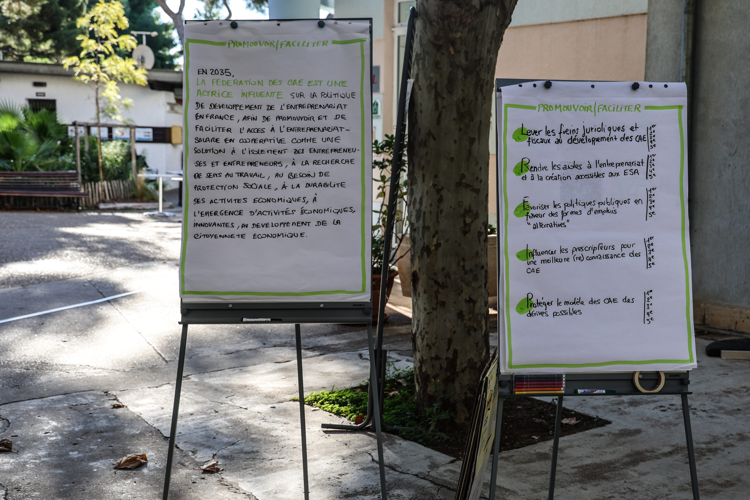 • Dans l’atelier « Charte de l’accompagnement », nous avons posé des bases communes, un cadre, des valeurs, des outils, des ressources et entamé la réflexion autour d’une charte collective de l’accompagnement en CAE.